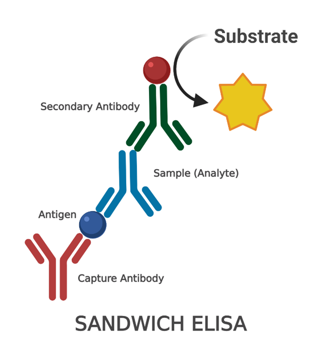 ELISA (enzyme-linked immunosorbent assay) adalah suatu teknik immunoassay yang digunakan untuk mendeteksi dan mengukur konsentrasi peptida, protein, serta antibody dalam suatu sampel. Prinsip dasar ELISA, target antigen/antibodi akan diimobilisasi pada microplate dan kemudian akan membentuk kompleks dengan konjugat antibodi/antigen yang sesuai. Selanjutnya, kompleks tersebut akan berikatan dengan reporter enzyme dan akan dideteksi melalui reaksi perubahan warna.